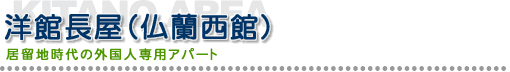 正面の石段を挟んでシンメトリーに2軒の建物が建つ。かつて外国人向けのアパートとして明治37年頃、旧居留地に建てられ、後に現在地に移築されたもの。